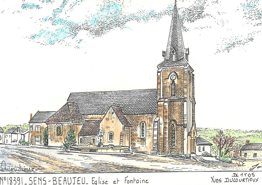 N° 18391 SENS BEAUJEU église et fontaine |