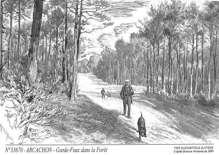 N° 33670 ARCACHON garde-feux dans la forêt (d'après gravure ancienne) |